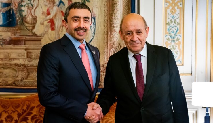 United Arab Emirates Minister of Foreign Affairs and International Cooperation Sheikh Abdullah bin Zayed Al Nahyan held a meeting on Thursday with French Minister for Europe and Foreign Affairs Jean-Yves Le Drian.